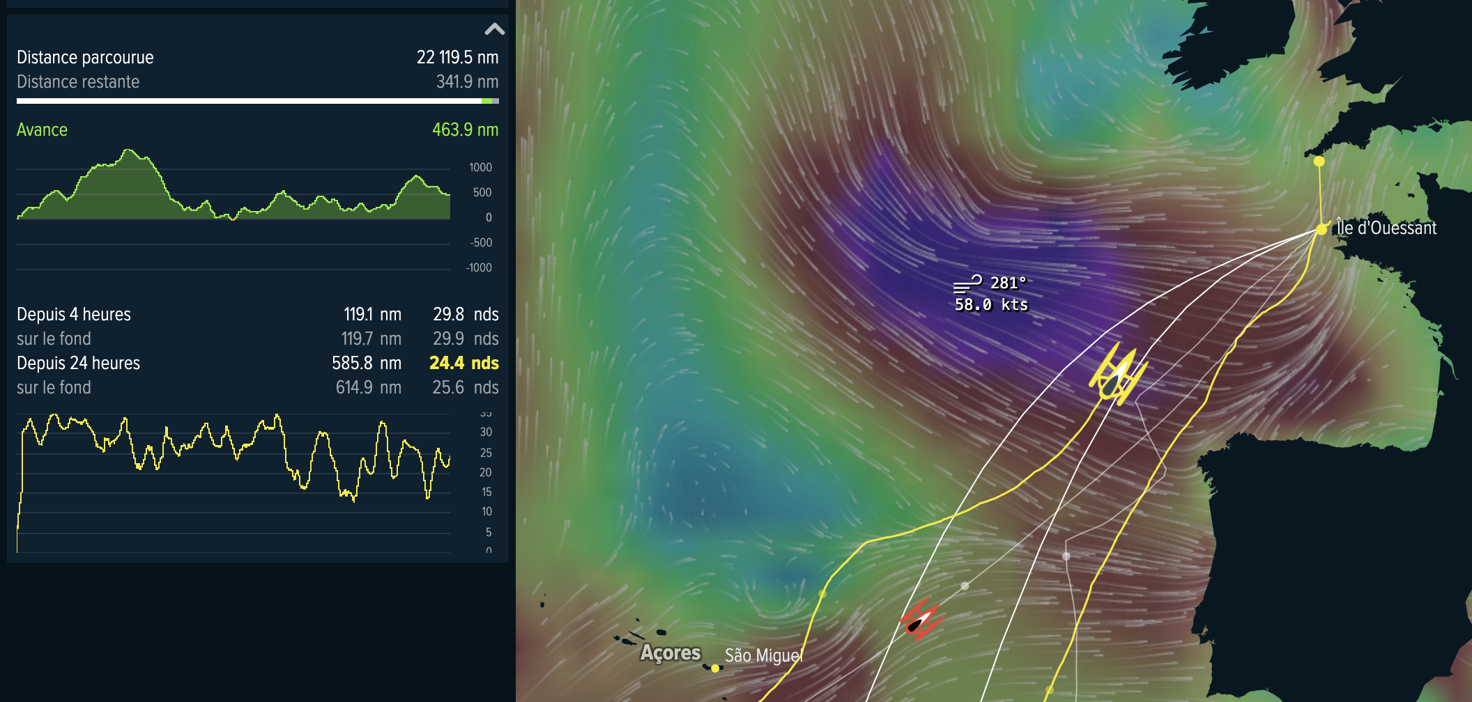 Die Crew der Sodebo Ultim 3 kämpft unter dem Einfluss von Ingrid mit Windgeschwindigkeiten von 40 bis 50 Knoten und zehn Meter hohen Wellen. Es ist die größte Herausforderung seit dem Start vor gut 40 Tagen. Der Trimaran muss vor Sonntagabend um 20:30 Uhr eintreffen, um den seit 2017 bestehenden Rekord von IDEC Sport zu brechen.