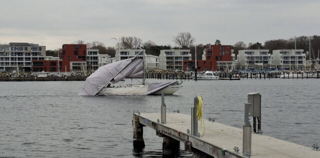 Zur Saisoneröffnung haben Beobachter bei der Einfahrt in die Trave einen erstaunlichen Mastbruch dokumentiert. Eine Comfortina Cayenne 42 kreuzte hoch am Wind an der Passat vorbei, als das Rigg zusammenbrach.