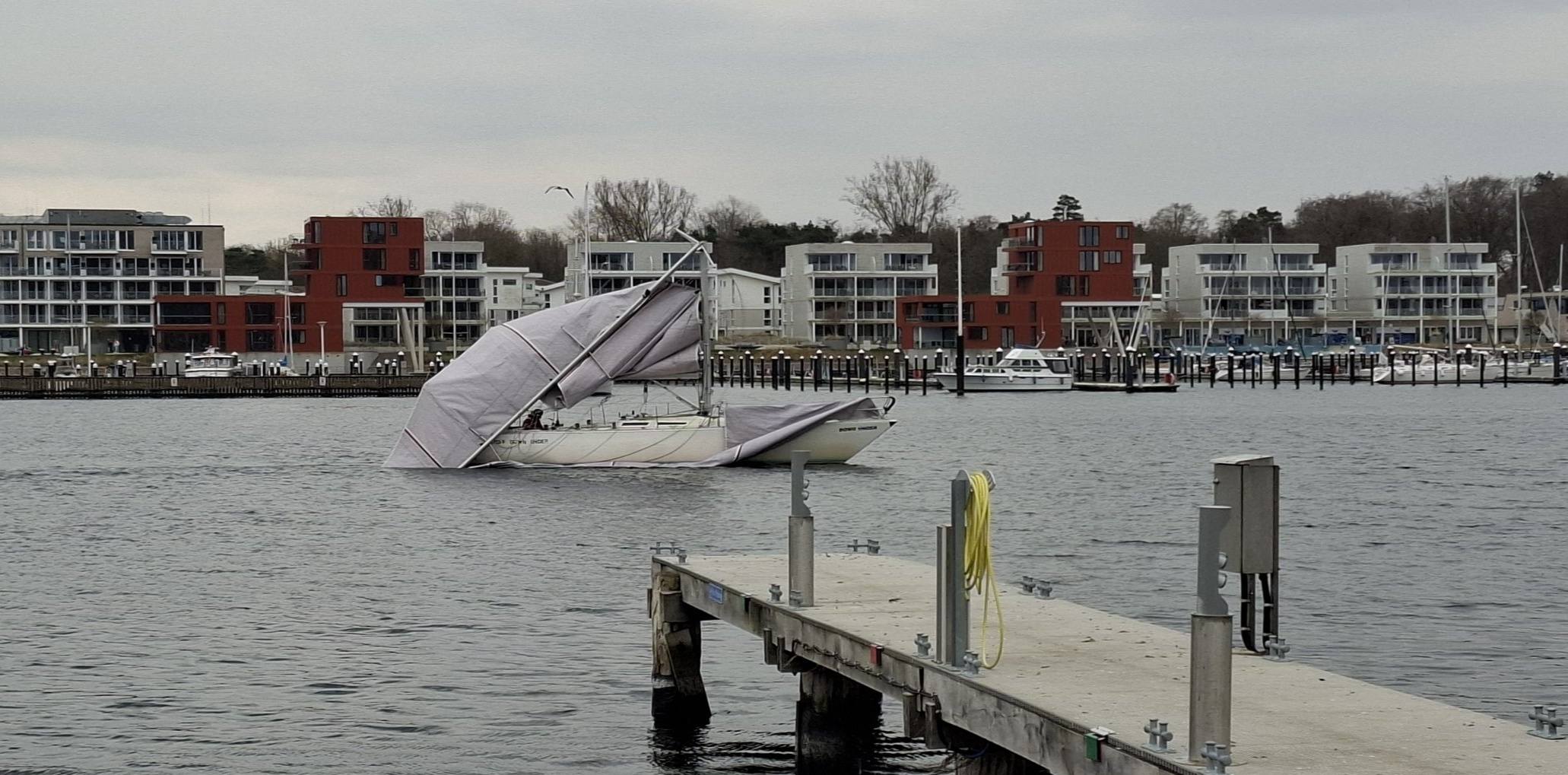 Der Wind wehte nicht stark. Mühelos hielt die volle Garderobe dem Druck stand und neigte den schmalen Rumpf eher vorsichtig zur Seite. Umso überraschter war die Beobachterin Sybille BI, als sie plötzlich sah, wie der Mast an der unteren der drei Salinge abknickte. Das Topp schlug hinter dem Heck ins Wasser.