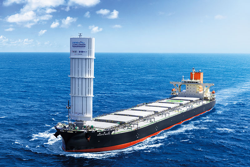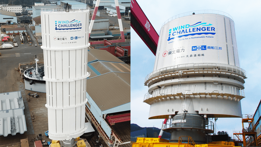 Die japanische Reederei Mitsui O.S.K. Lines (MOL) ist eines der führenden Unternehmen im Seehandel und hat sich ambitionierte Ziele zur Emissionsreduktion gesetzt. Es will bis 2050 klimaneutral die Meere befahren. Dafür vertraut die Reederei auf ihre hauseigene Technologie „Wind Challenger“, einen rotierbaren Teleskopmast, bestückt mit festen Segeln aus Kompositmaterialien. Diese Profile können je nach Bedarf und Windbedingungen ein- oder ausgefahren werden und sorgen für mehr Effizienz und Sicherheit an Bord.