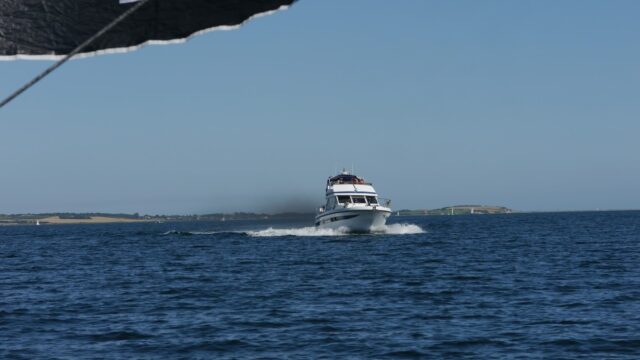Wer regelmäßig segelt oder surft, kennt es: das Wummern im Rücken, wenn ein Motorboot zu nah vorbeirauscht, das kurze Zucken, ob der Fahrer einen überhaupt gesehen hat. Manchmal, so einen Eindruck hatte ich schon des öfteren, machen sich manche Mobo-Kapitäne einen Spaß draus, bei Flaute und Glattwasser das Segelboote dort drüben (also mich) mal ordentlich durchzuschütteln. Vor allem in meiner Zeit auf den Brandenburger Binnenrevieren kam das recht oft vor. Aber auch auf der Ostsee hatte ich das schon. Bloß nicht Abstand halten, sondern ungedrosselt so nah wie eben möglich vorbeiballern. Und dann sitzen sie da auf ihren Flybridges und starren einen an wie die Kachelöfen. Für solche Momente habe ich immer leicht vergammeltes Obst und Gemüse parat. Mit einer matschigen Tomate hab ich da schon einmal mit einem beherzten Wurf einen Salon verziert. Leider verhindern matschige Tomaten keine Unfälle.