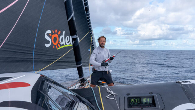 Drei Tage vor dem mutmaßlichen Ende der Rekordfahrt sieht sich Sodebo der bisher größten Herausforderung gegenüber. Der gesamte Nordatlantik wird von Windböen und extremem Seegang heimgesucht. Die Frauen auf IDEC Sport befinden sich nur noch knapp voraus schon in dieser Zone – und haben gerade ihr Großsegel zerrissen.