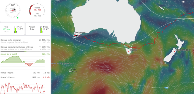 Auch er hatte 2003 in dieser Region mit großen Problemen wegen der Kreuzseen zu kämpfen. Doch wie er heute in kommentierenden Interviews beschreibt, die er regelmäßig französischen Segelmedien zur aktuellen Situation seines jungen Nachfolgers gibt, ist das „Stampfen“ seines Aluminium-Einrumpfers damals kaum vergleichbar mit dem Beben eines Ultim-Trimarans, wenn dieser mit hoher Geschwindigkeit in die Wellenberge brettert.