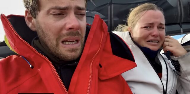 Das belgische Class40-Duo Caroline Dieu und Jérôme Délire hat viel Mitgefühl erfahren, nachdem die Transat Café L’Or Organisatoren ihr Video veröffentlicht hatten. Sie hatten beschrieben, wie die Wirbelschleppe eines angeblich zu tief fliegenden Düsenjets zu einem Sonnenschuss unter dem Medium Gennaker geführt habe. Dabei sei das Fall gerissen, das Segel ins Wasser gefallen, beim Bergeversuch am Kiel hängen geblieben und schwer beschädigt worden.