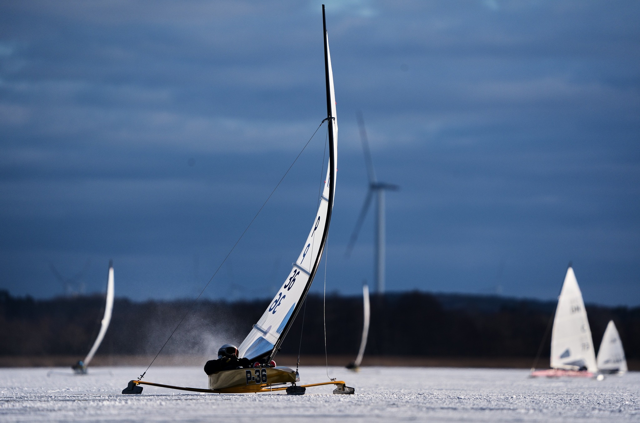 Dort wurden dann auch Qualifikationsrennen für die C-Gruppe ausgetragen, da das Eis dick genug und schneefrei war. Als jedoch einige tiefe Risse im Eis entdeckt wurden und ein Pilot aus Litauen in einer solchen hängen blieb und sich die Steuerkufe brach, wurde die Regatta abgebrochen. Inzwischen berichteten die Eis-Scouts, dass sich die Bedingungen am ursprünglich geplanten Event-Ort, dem Bukowo-See, wieder verbessert hätten. Und so machte sich der Tross erneut auf den Rückweg.