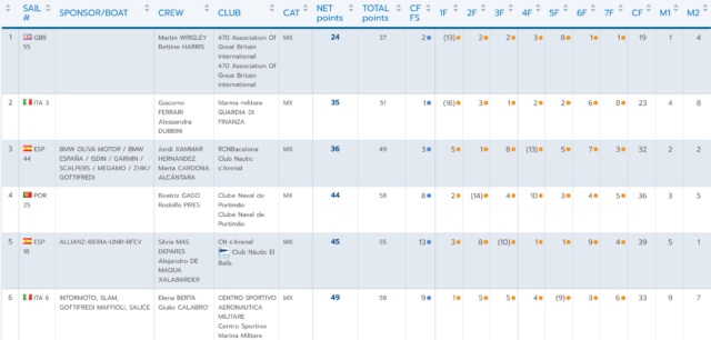 Die Ergebnisse wurden erstmals im 470er nach dem neuen Olympia-Format berechnet. Anders als noch beim ILCA7 Test auf Lanzarote gingen die Rennen der Vorrunde als eine einzige nicht streichbare Platzierung als Punkte in die Gesamtserie ein. Danach kam es dann vor den beiden Medalraces für die Top Ten zu den komprimierten Punktanpassungen, um die Finals spannender zu machen.