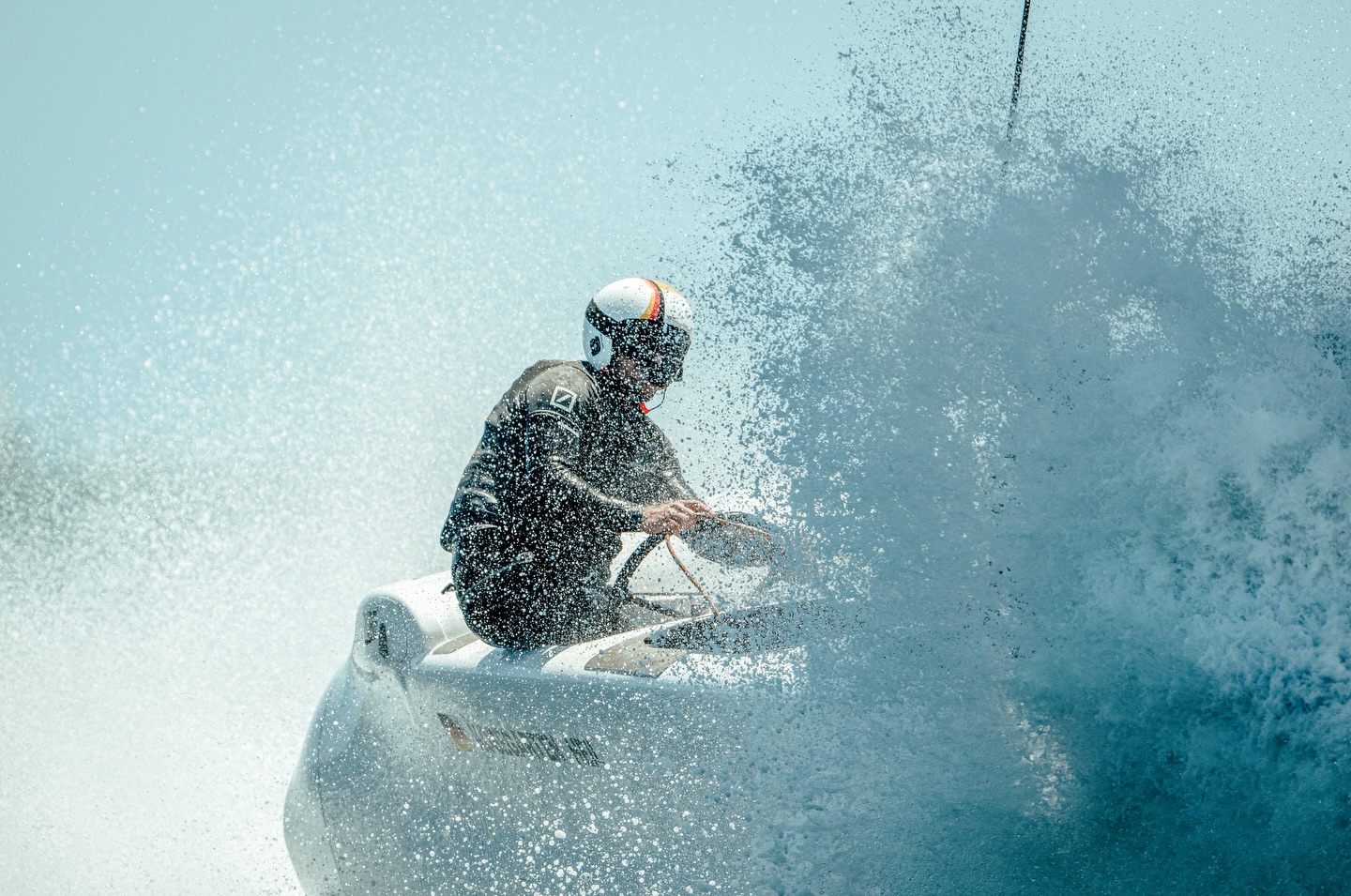 Erik Heil bei heftigen Bedingungen in Perth am Steuer des deutschen F50. © SailGP