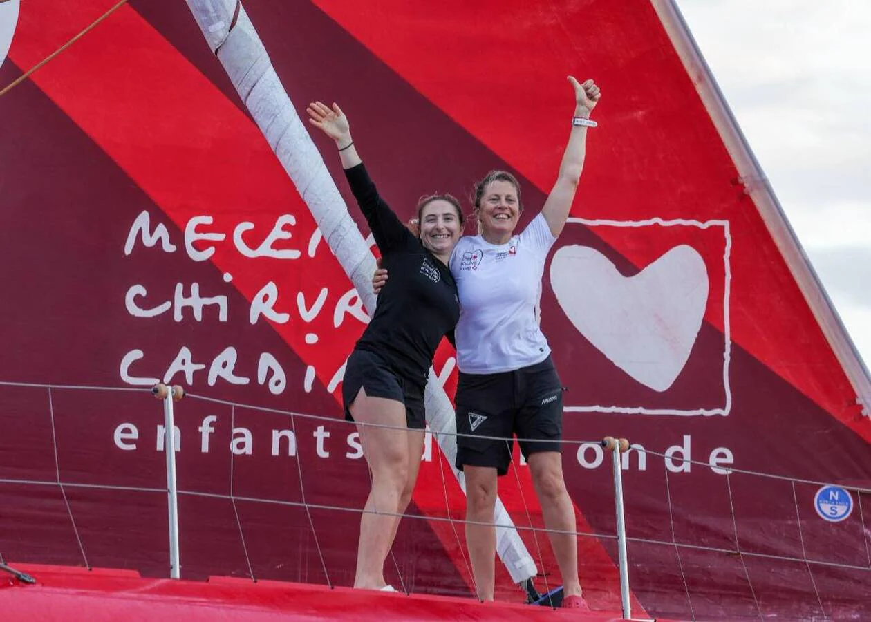 Violette Dorange und Samantha Davies nach dem Zieleinlauf bei der Café l’Or. © JEAN-LOUIS CARLI / ALEA